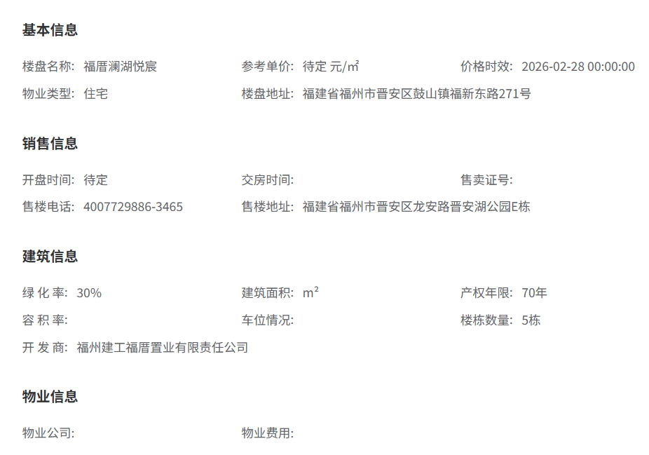 目前,福厝·澜湖悦宸具体销售均价尚未正式公布。