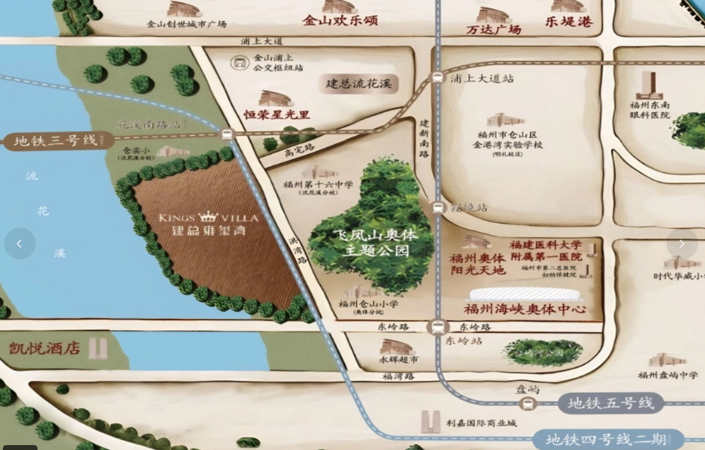 项目位于奥体板块,已发展成熟,拥有“一河一江一山”三重立体生态资源:流花溪、乌龙江和飞凤山。