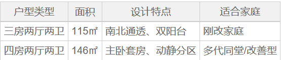 世纪城二期定位明确指向改善型客户,主力户型面积在115-146平方米之间,均为三房至四房设计。