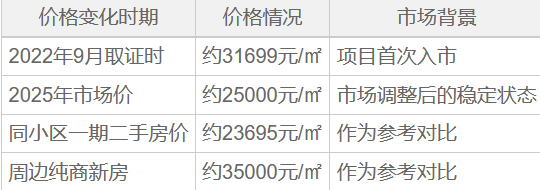 随着市场调整,至2025年,多个渠道显示其均价已稳定在约25000元/平方米,主力户型总价在304万至354万之间。