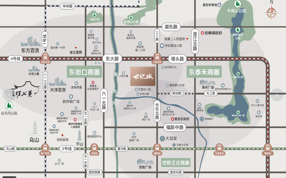 生态休闲资源同样丰富,项目周边有五大公园环伺,包括金鸡山公园、温泉公园、鹤林生态公园、牛岗山公园和晋安湖公园。