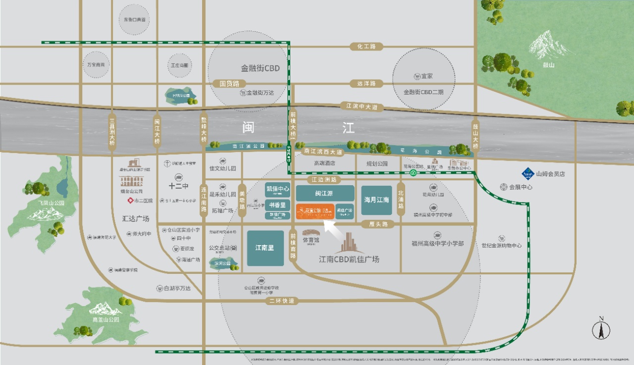 项目地处福州“东进南下”战略的重要支点,被老仓山板块、江南CBD板块、金融街商圈与白湖亭万达商圈四大核心区域环绕。北临台江中心排尾与金融街,南靠江南CBD高端商务区,西接老仓山南台路与三叉街,东邻海峡会展中心,区位价值显著。