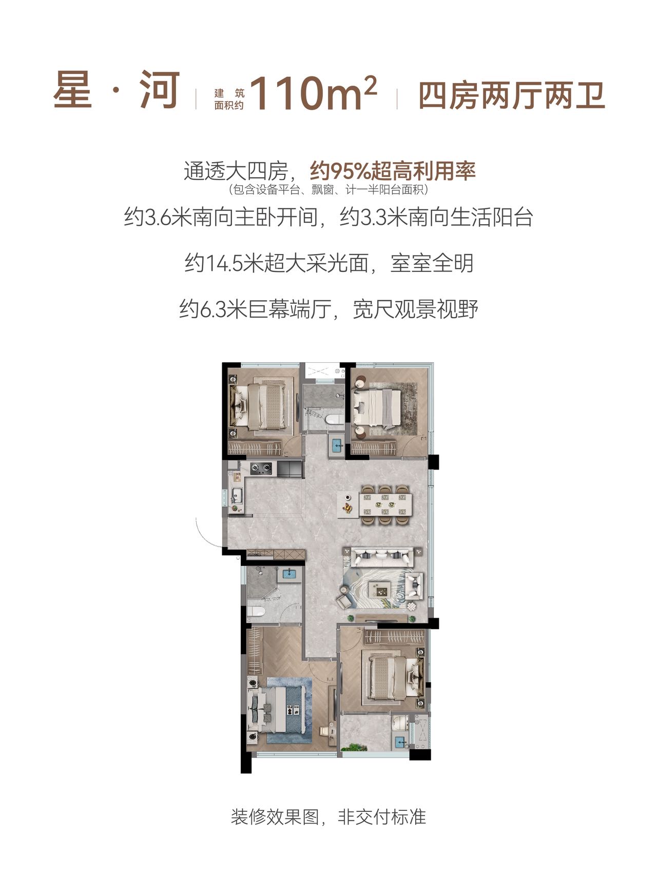 约110㎡四房:总价约318-361万。