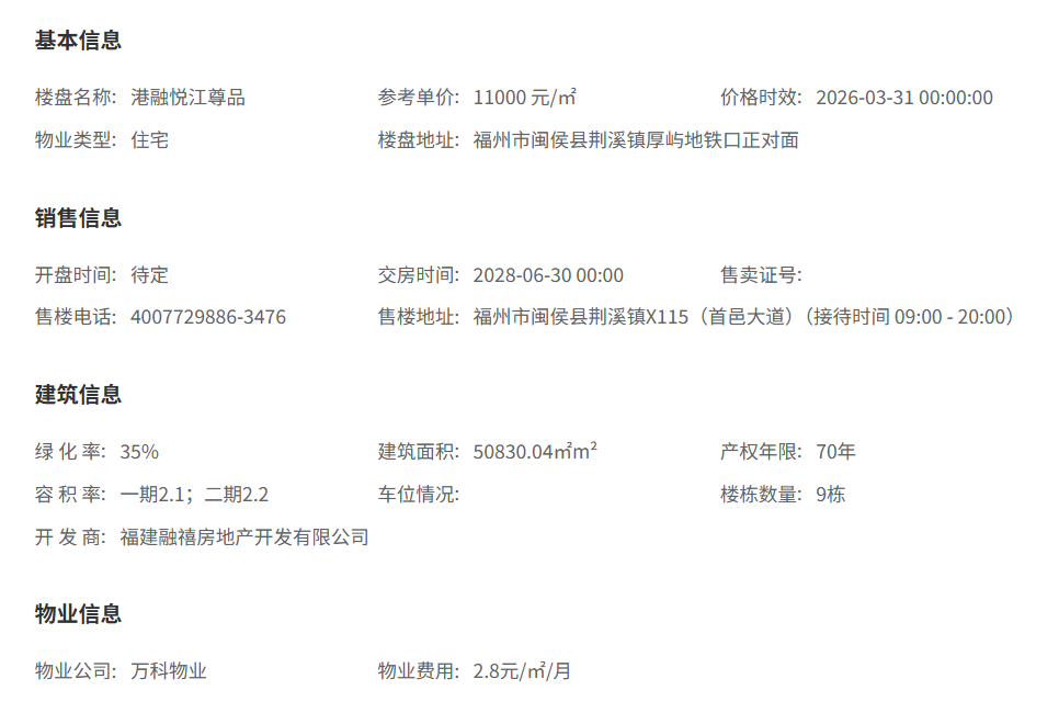随着福州“四代住宅”概念的兴起,位于闽侯荆溪的港融悦江尊品作为该板块的首个四代宅项目,凭借“地铁口+江景+新规户型”的标签,确实在2025年底至2026年初的福州楼市中赚足了眼球 。