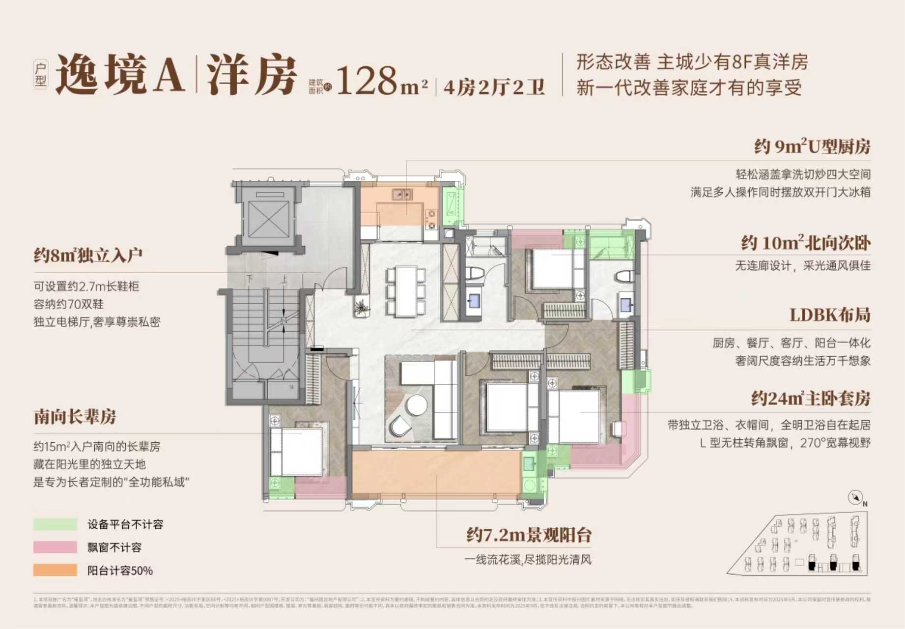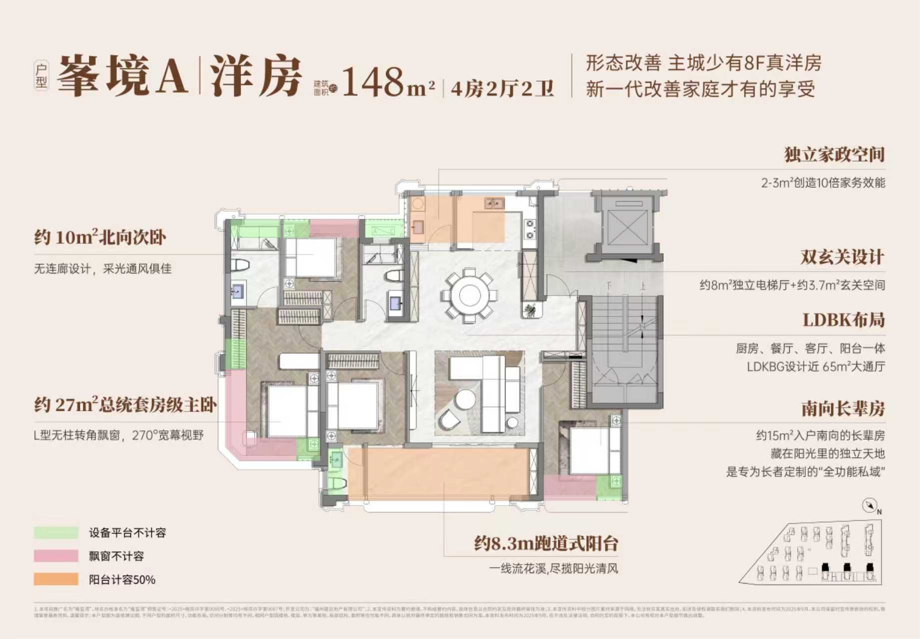 洋房/小高层(建面约128-148㎡): 针对首改及深度改善家庭,采用一梯两户设计,洋房公摊仅约19.3%,保证了居住的私密性与高得房率。