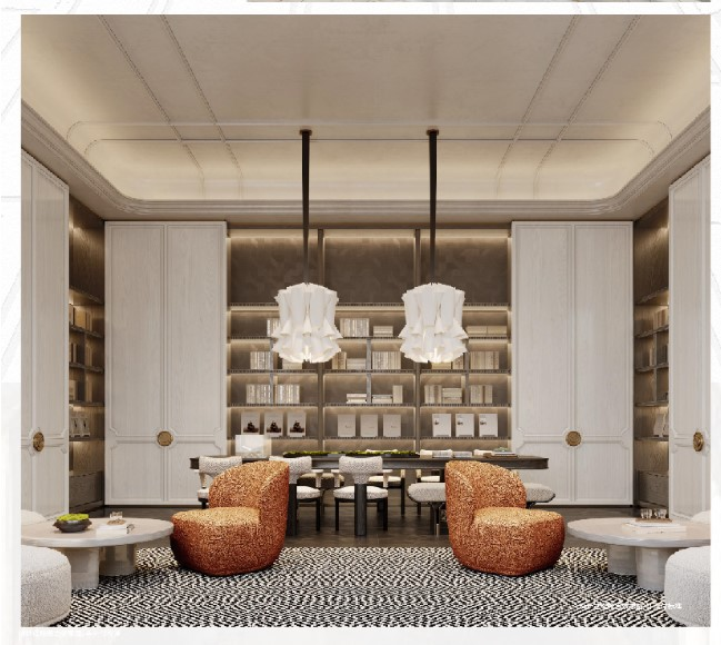 在众多楼盘追求铝板流线型设计的当下,雍玺湾反其道而行之,采用纯正法式风格。近50米的法式门庭、5.5米高的整石立柱、昂贵的干挂石材外立面,营造出一种“Old Money”的沉稳与庄重,这种经得起时间考验的材质,正是顶级豪宅的底气所在。