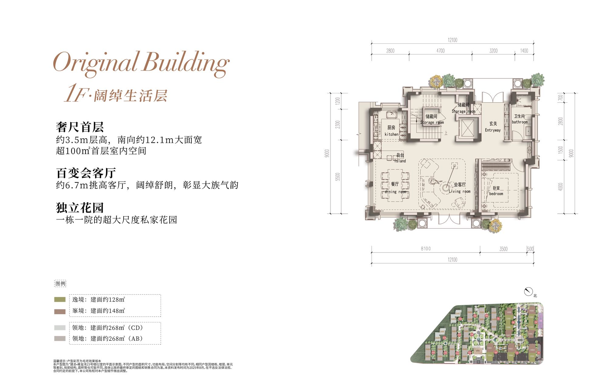 联排别墅(建面约267-270㎡): 这是项目的“王炸”产品。虽然产权面积看似克制,但实际使用面积可达800-1300㎡。这种通过地下空间、庭院、露台延伸出的“立体生活”,实现了大平层无法比拟的空间自由度——私家花园、下沉庭院、多功能会所层,让三代同堂真正做到“合而不扰”。