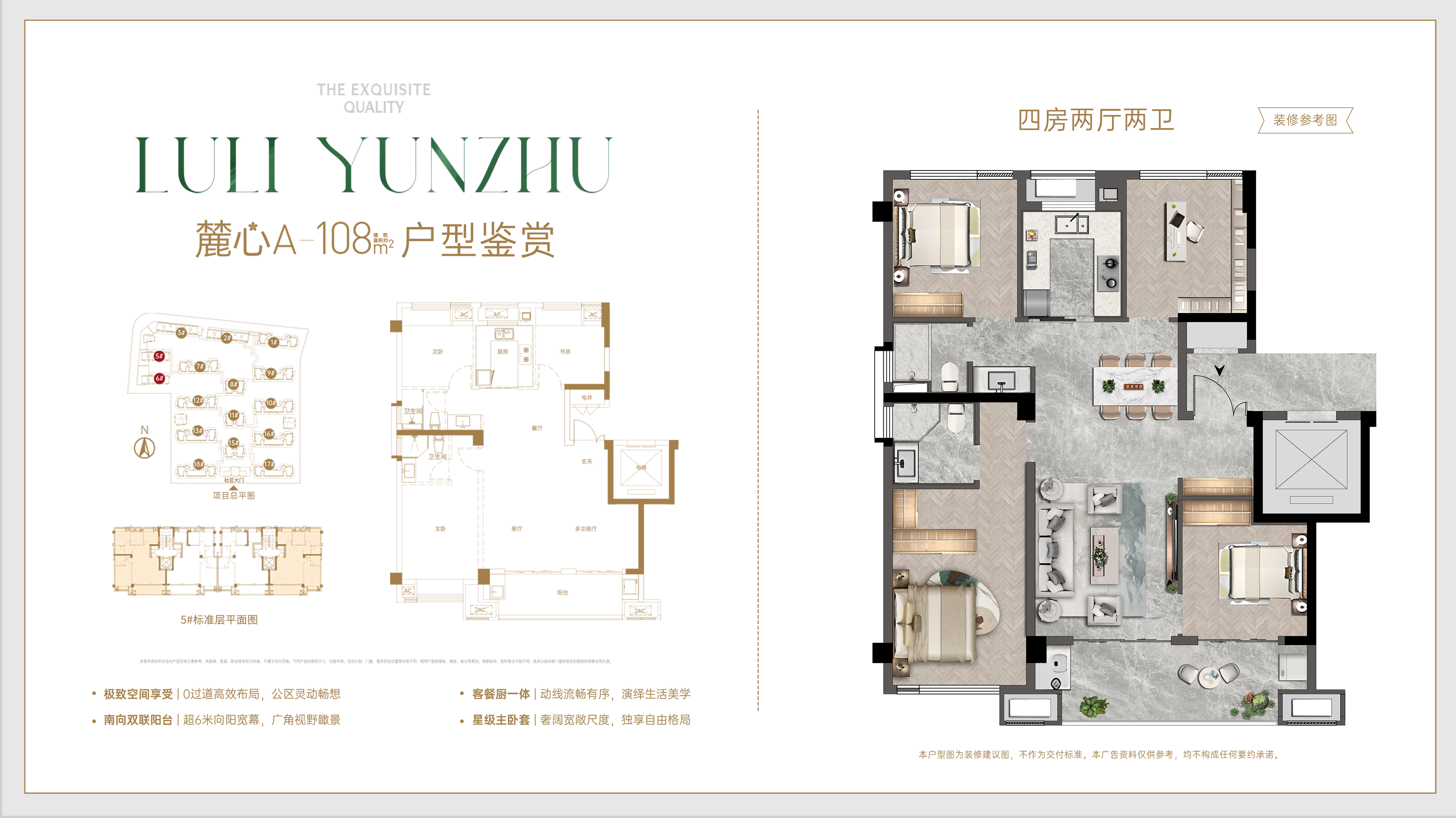 2. 追求居住体验的品质刚需:想一步到位,用相对合理的总价(如108平米户型)体验第四代住宅的居住革新。
