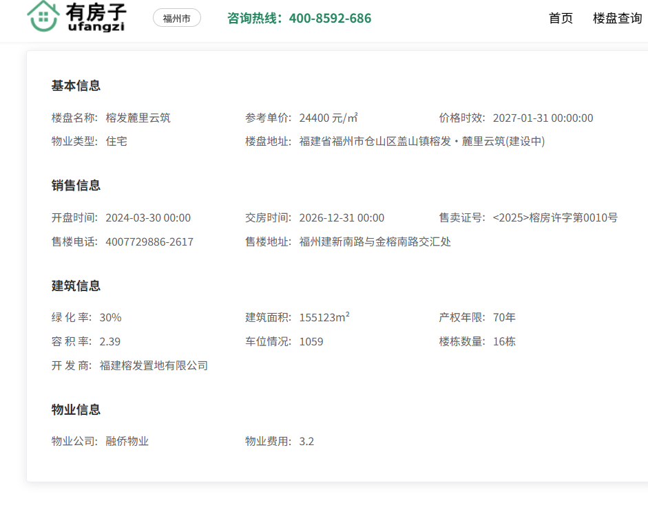 对于着急入住的改善客群来说,交房时间是关键。多个房产平台及官方预售信息交叉印证,榕发麓里云筑预计将于2026年12月31日交付。这意味着项目目前正处于准现房或建设中期阶段,购房者无需经历过长的等待周期。