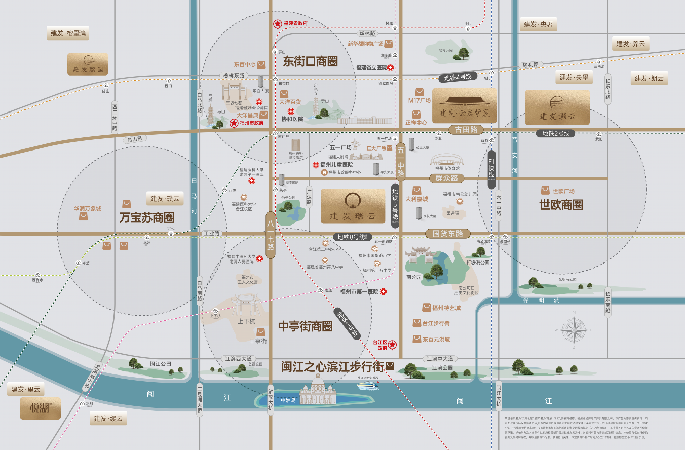 生态:紧邻福州历史名园“南公园”,推窗见绿,茶亭公园、打铁港公园等也在步行范围内。