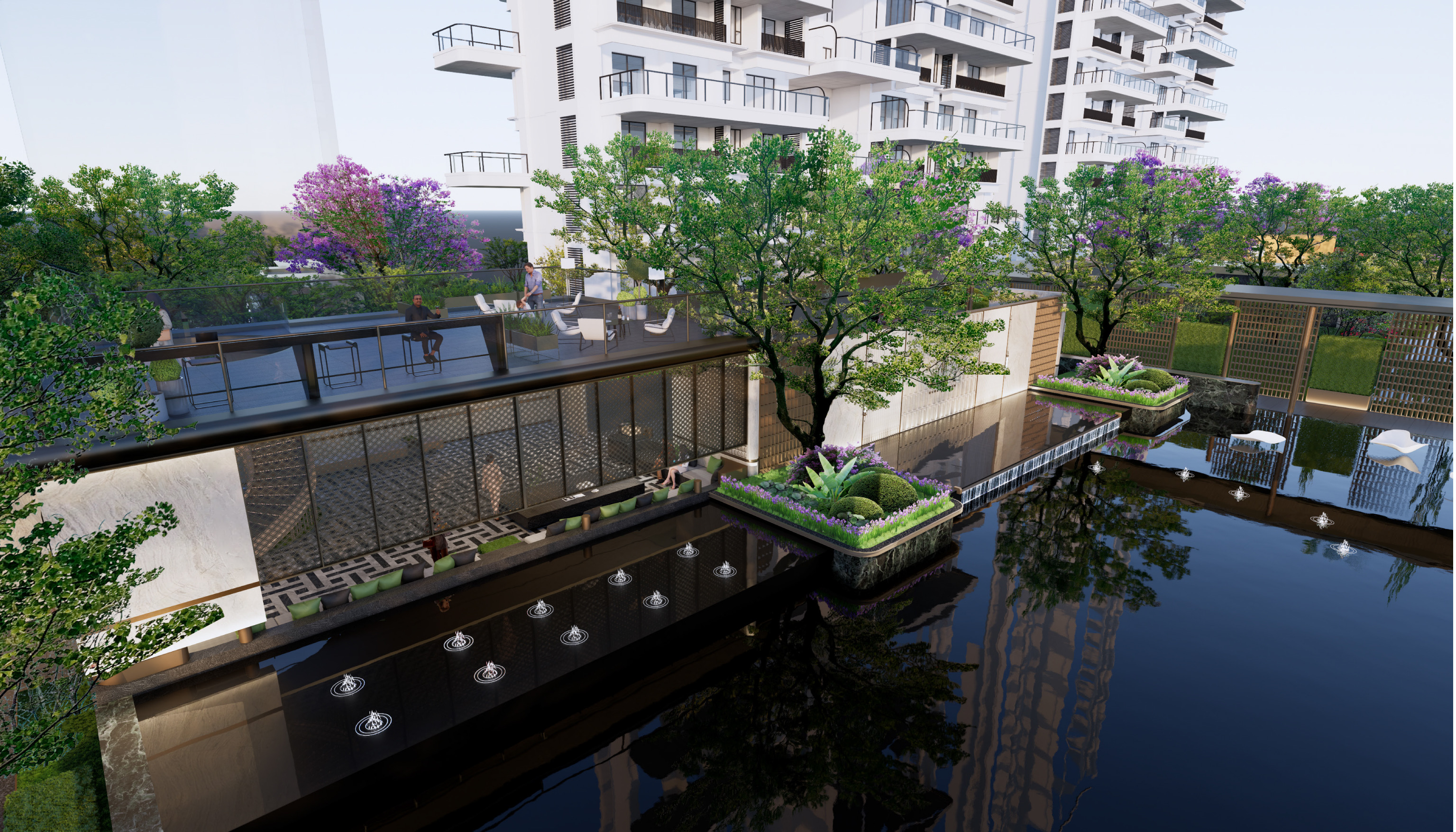 1. 尺度革新:将传统的LDKBG(餐客厨花园阳台)升级为LDKGY(餐客厨花园庭院)。这不是简单的字面变化,而是实现了从“阳台”到“庭院”的质变,让空中花园真正具备了社交和家庭聚会的功能。