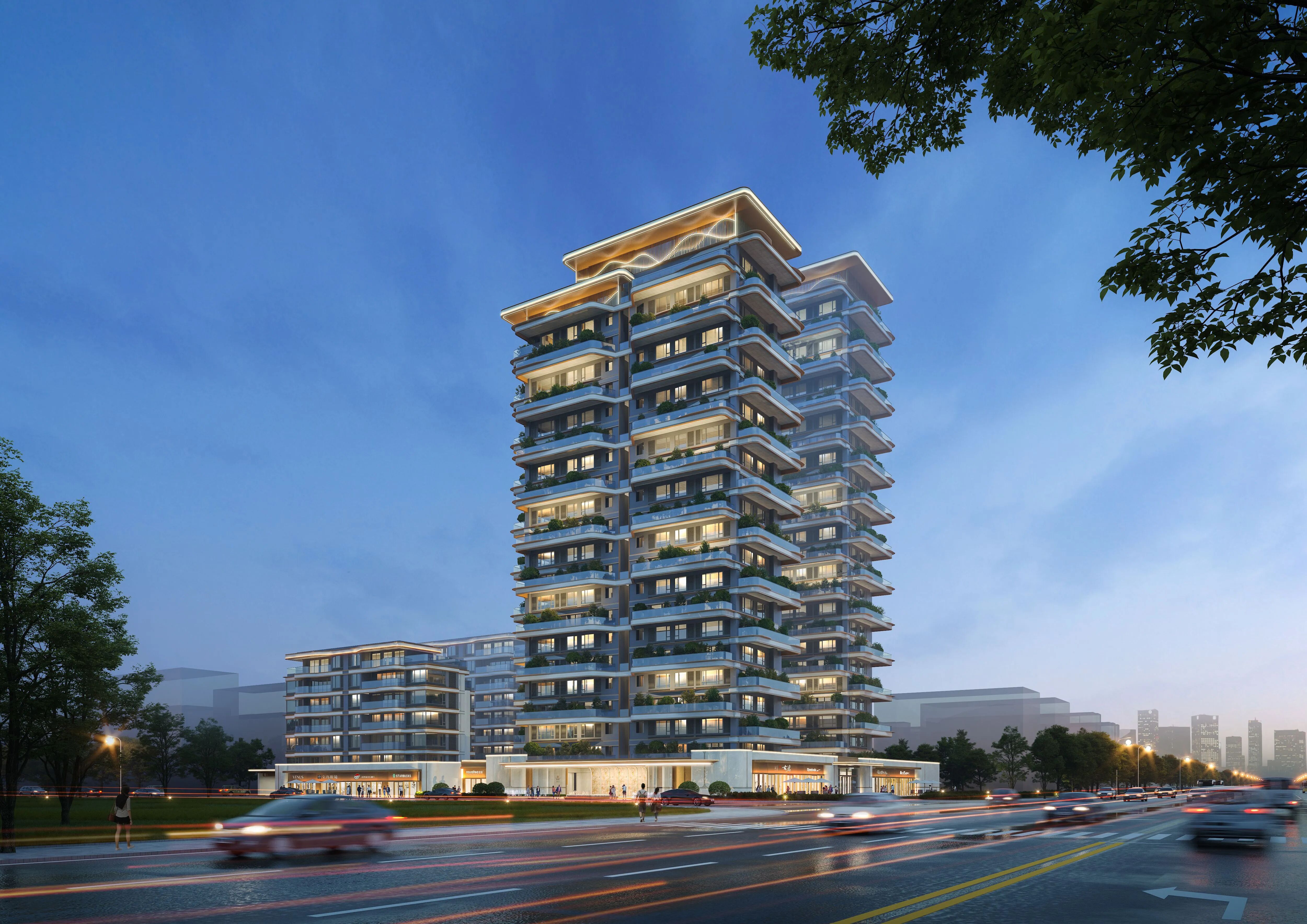 项目位于福州连江中路西侧、光明港北侧,由福州古厝集团旗下新榕城建开发,是“水天系”的高端代表作。整个社区仅规划9栋住宅(2栋四代宅+7栋洋房),总共只拿出了195套房源,全部是建面约162㎡起步的大平层。