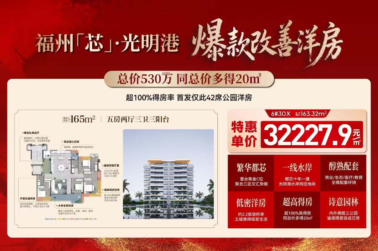 在寸土寸金的二环内,项目以容积率仅约2.2、绿地率超30%的低密规划,打造了9栋由7栋7-15层真洋房与2栋四代宅组成的纯改善社区,总计仅195席 。这种“低密+滨水”的组合,在福州主城区已是绝版,其资产保值能力不言而喻 。