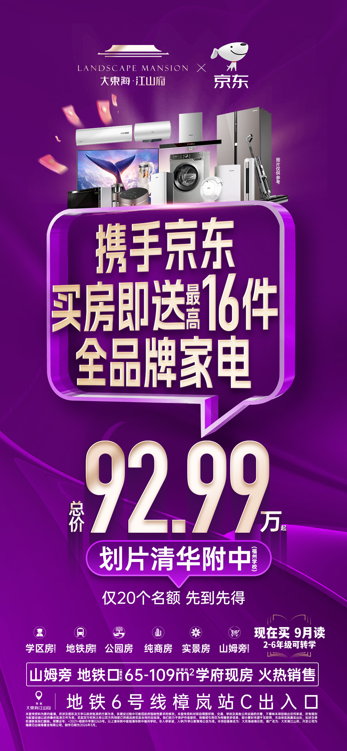 我们深知,买完房只是第一步,接下来的装修、买家电才是掏空钱包的“无底洞”。但这一次,大东海江山府直接把福利拉满——买房即送最高16件京东家电!