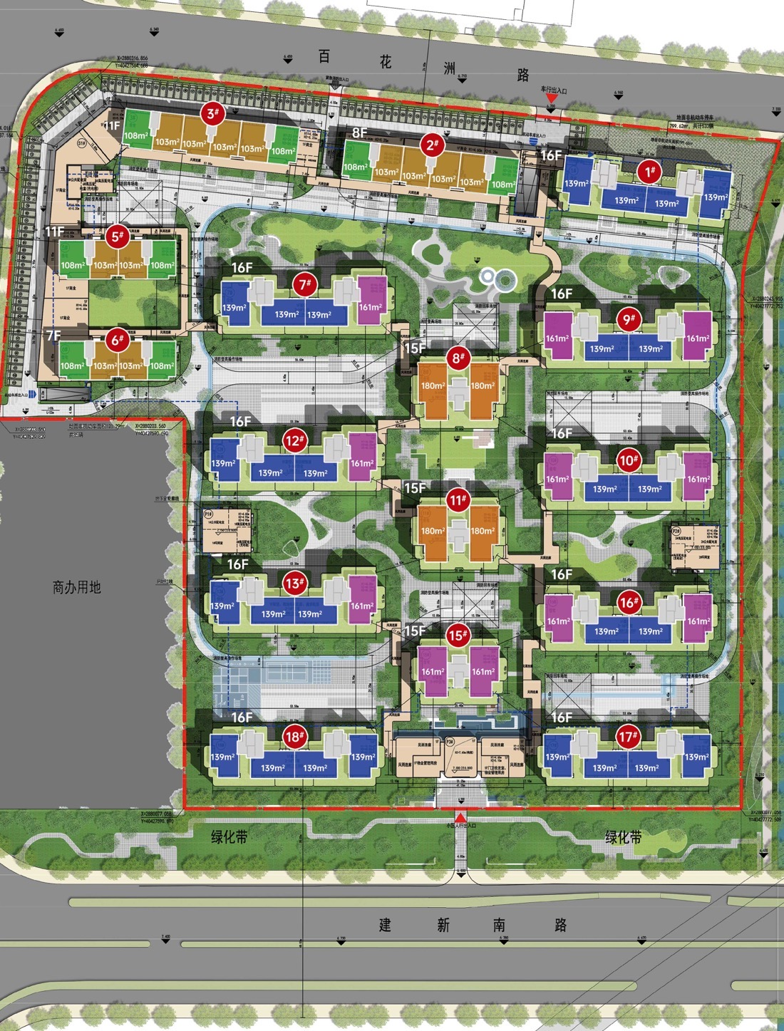 榕发麓里云筑位于福州仓山区建新南路北侧、鹭岭路西侧,地处霞境新城东南侧。项目总占地约4.79万平方米,总建筑面积约15.5万平方米,规划建设16栋7-16层的住宅,容积率仅为2.4,绿化率达30%,是一个典型的低密改善社区,仅规划802户 。