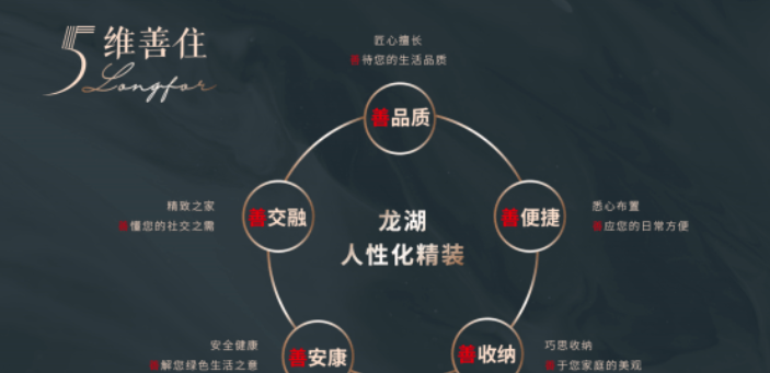 【臻装价值】五维善住平装体系,重新定义时期大宅龙湖特有五维善住平装系统,将现代生活美学与匠工质量有机分离,筑成兼具高端审美、适用主义、精工哲学和人性化的精工筑品。5大致系全品牌优选、13项轻松整理功用、多出一间屋子的收纳系统、5大安康系统,更有3大定制陶板、四大柜体、三大电器赠送。