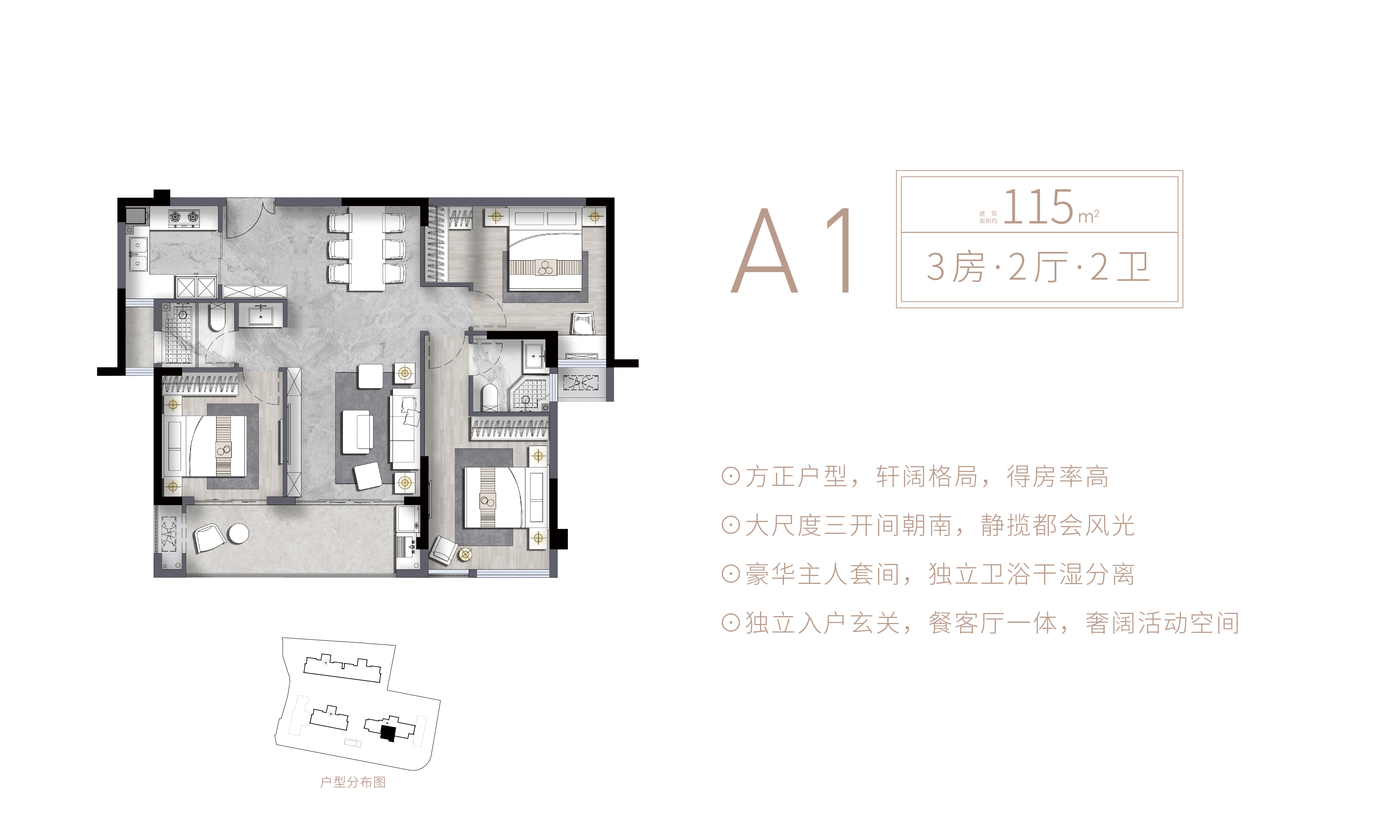 传世大邸(115㎡、141㎡、160 ㎡):总高23-25层,两梯三户设计,户型方正、低公摊、高采光、南北通透尽享舒适