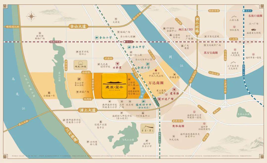 - 地理位置优越:建发玺云位于福州市金山绿轴板块,该区域汇聚了丰富的资源优势和开发前景,是福州城市发展的核心区域之一。
