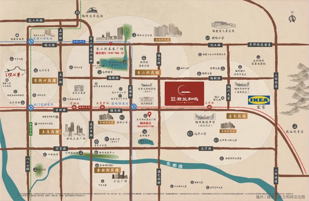 建发美的·君兰和鸣位于福州三创园产业区核心地带,北连晋安湖CBD,南接海峡金融街CBD。拥有千亩绿地景观,便捷交通和完善配套设施。采用禅境中式设计,引入智慧生态系统,提供107-149平米奢华住宅。美的一级物业服务,营造高端宜居社区。