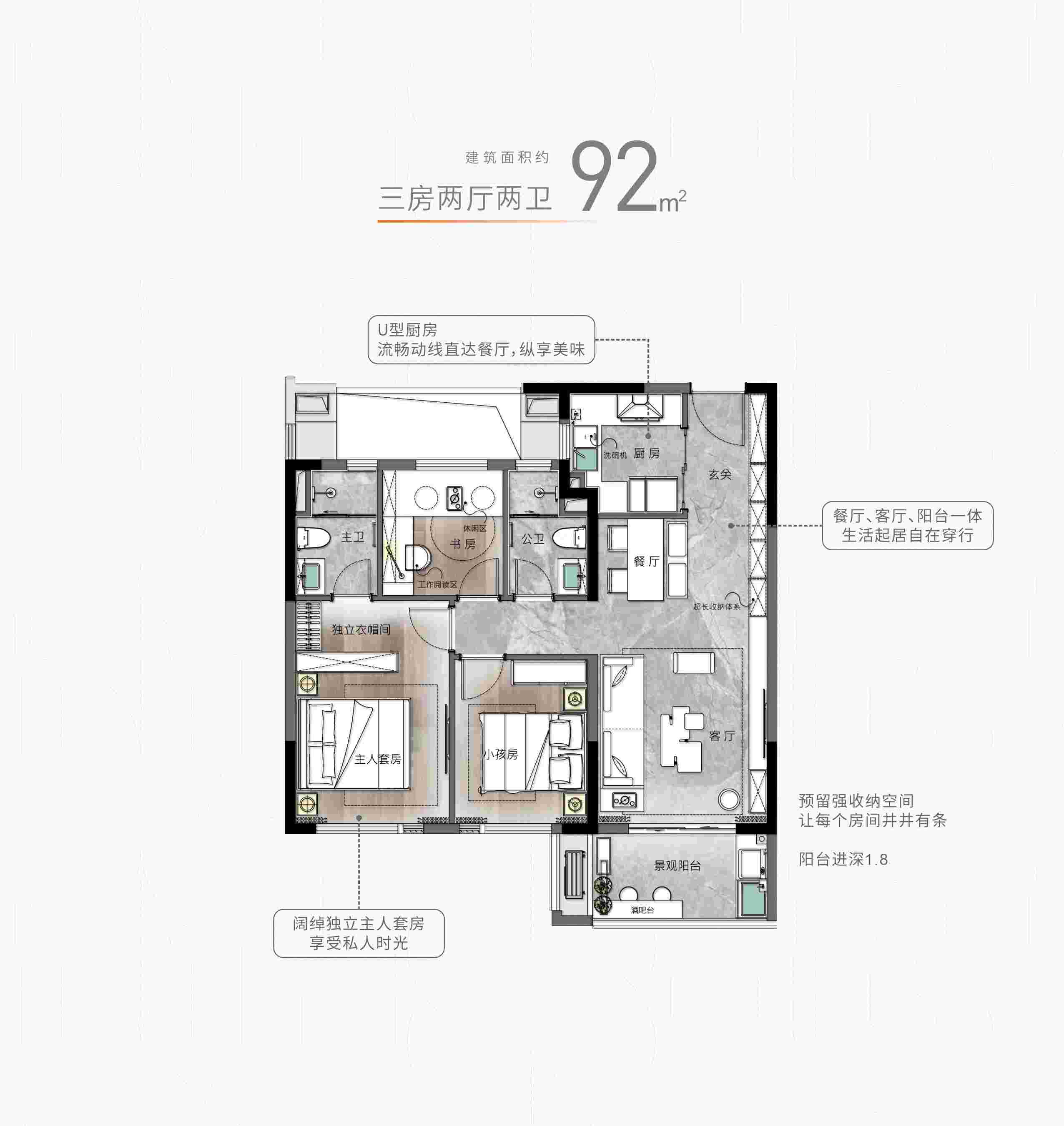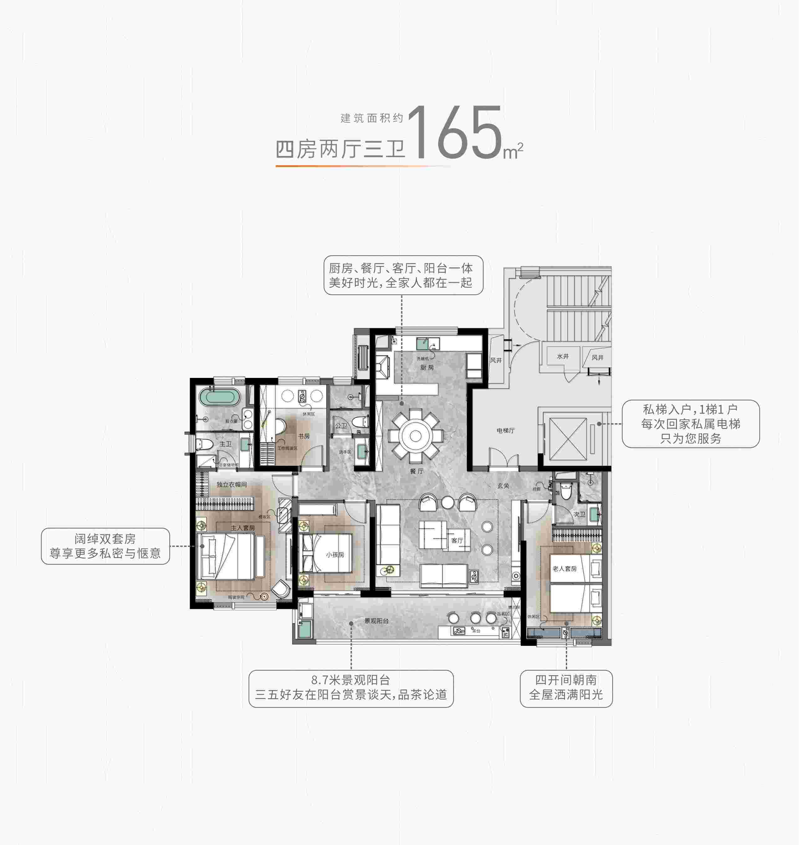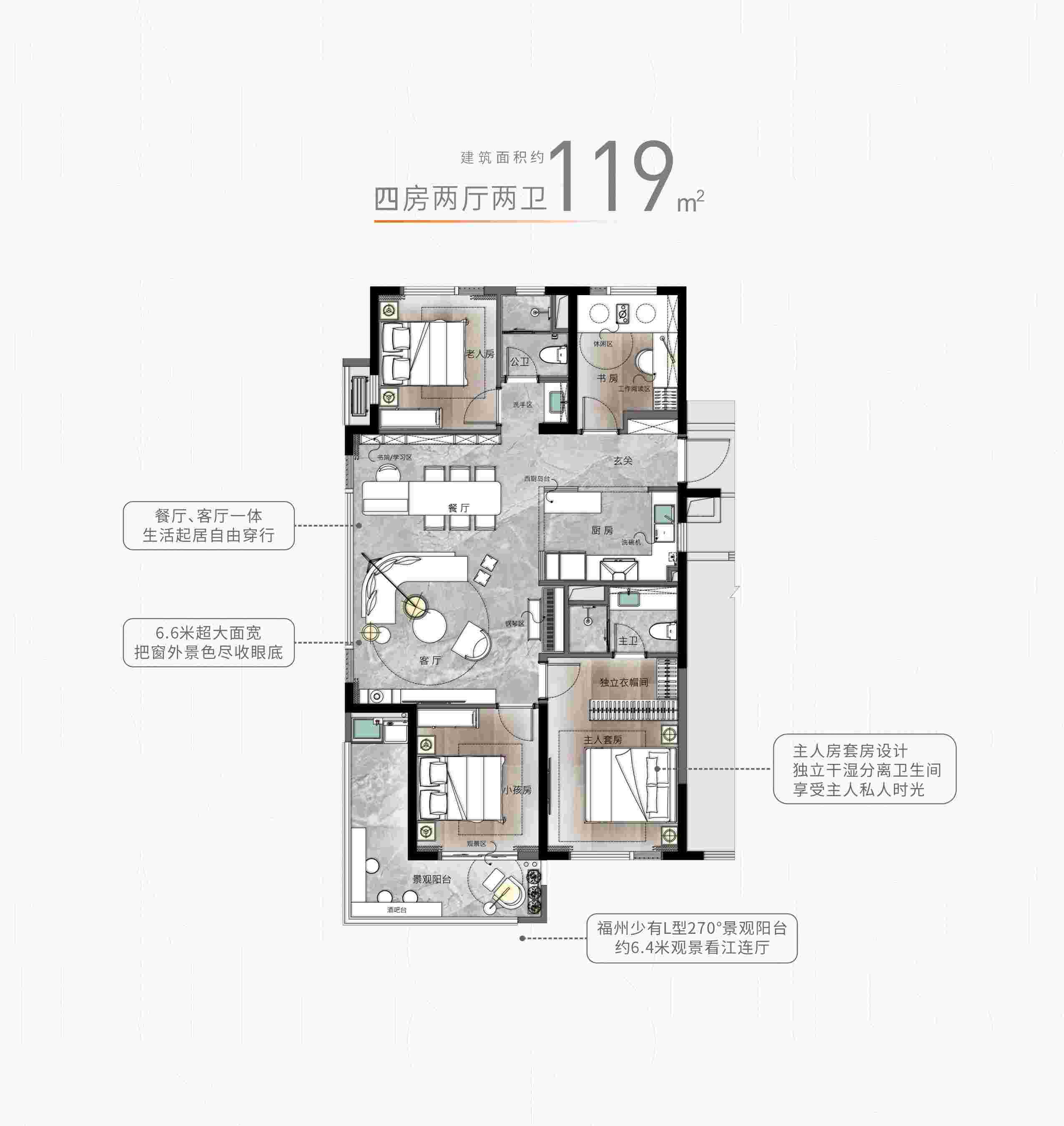 项目规划建面约92平方米的江景三房,以及119-165平方米的低密奢境户型,打造超大客厅面宽约6.6米、奢阔宽厅约42平方米、独特的L型270°景观阳台等特点,完美契合区域三代同堂及追求高品质生活的需求,为您提供舒适的居住空间。精装设计:绿色健康,舒享美学家居!