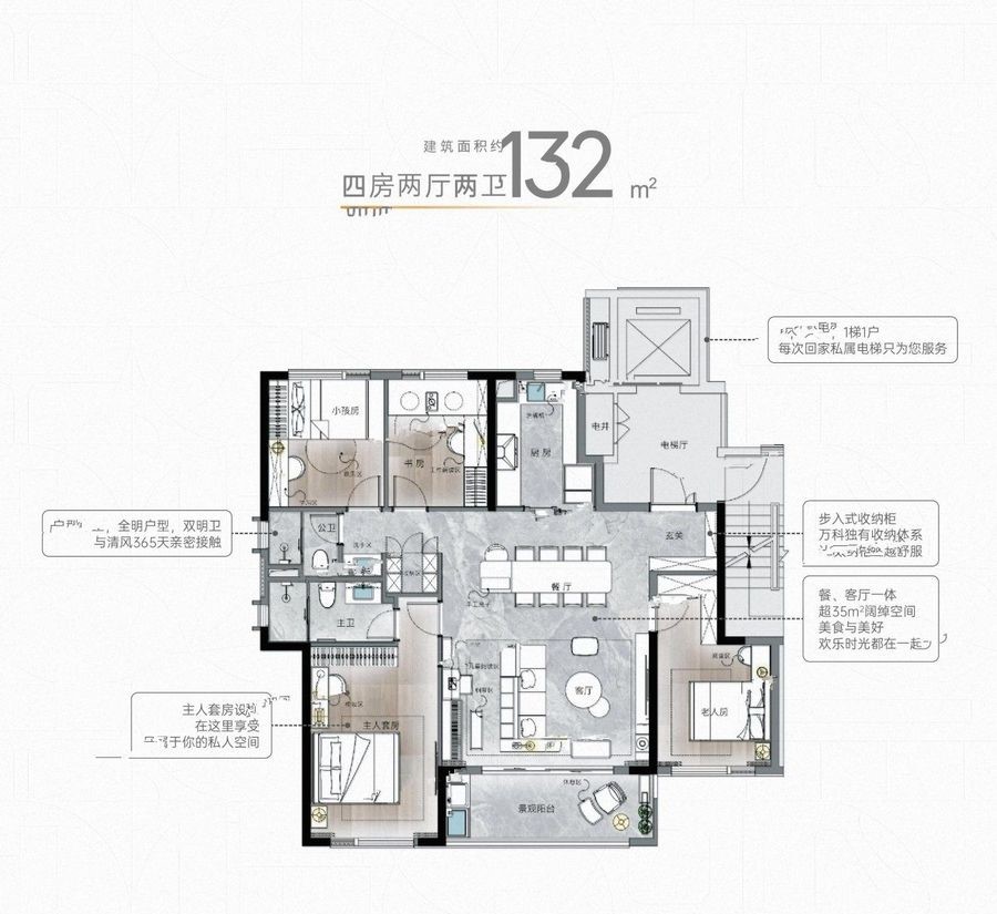 项目景观以绿色、健康、科技为核心理念,规划了4大中央绿岛和20多个主题花园,如莫奈花园、畅似书园等,打造了下沉式游泳池、网球场和足球场等8大全龄运动场。此外,社区还拥有7大主题社区架空层,让您和家人拥有快乐的归心之所。 万科城市之光,给您带来高品质生活的完美选择!