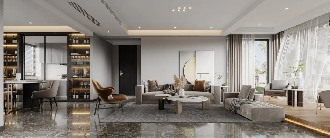 约6.5米面宽的共享家厅,是宴请和聚会的理想场所,是友人分享美好的天地。在这里,无论是家人的天伦之乐,还是圈层之间的盛大交际,都能得到淋漓尽致的演绎。宽敞的空间和灵活的布局赋予了它无限的欢乐可能。